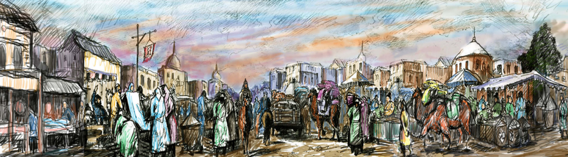王延德一行从东京洛阳出发,渡黄河、越戈壁沙漠,一路风霜雨雪,风尘仆仆、晓行夜宿、长途跋涉。途径宁、蒙、甘等地草原、沙漠道路,北庭的确是一片沃土,天然牧场,一路但见马群奔驰似箭、羊阵滚如珠玉、驼队时集时散。使使团在持旗人的引导下,浩浩荡荡,经多日来到北庭金满。时天风和日丽、晴空万里,只见北庭花明柳暗、绿树成荫、郁郁葱葱,至,到处(草丰腴,多处河流诤琮。
